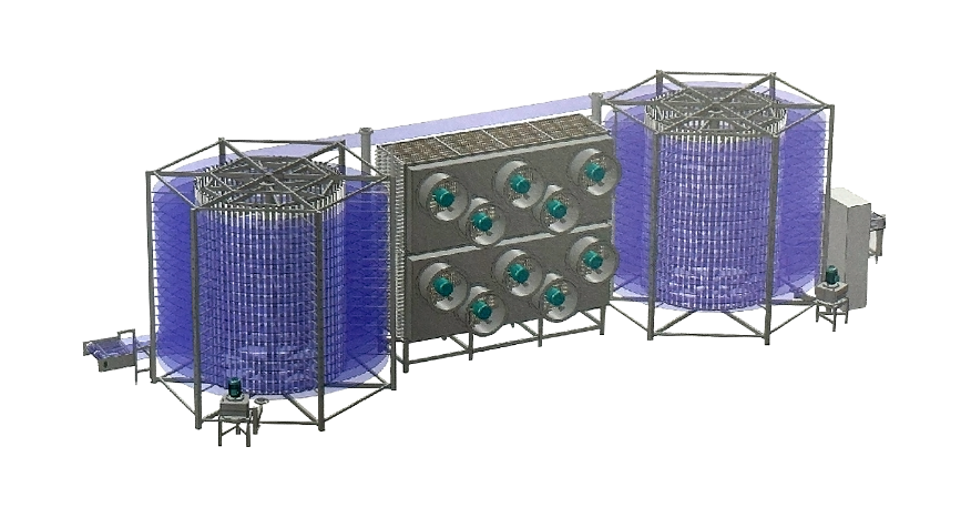 Square Technology에서 생산하는 싱글드럼 로우텐션 스파이럴프리저는 과립 및 작은 조각 식품의 개별 급속 냉동에 적용할 수 있습니다.